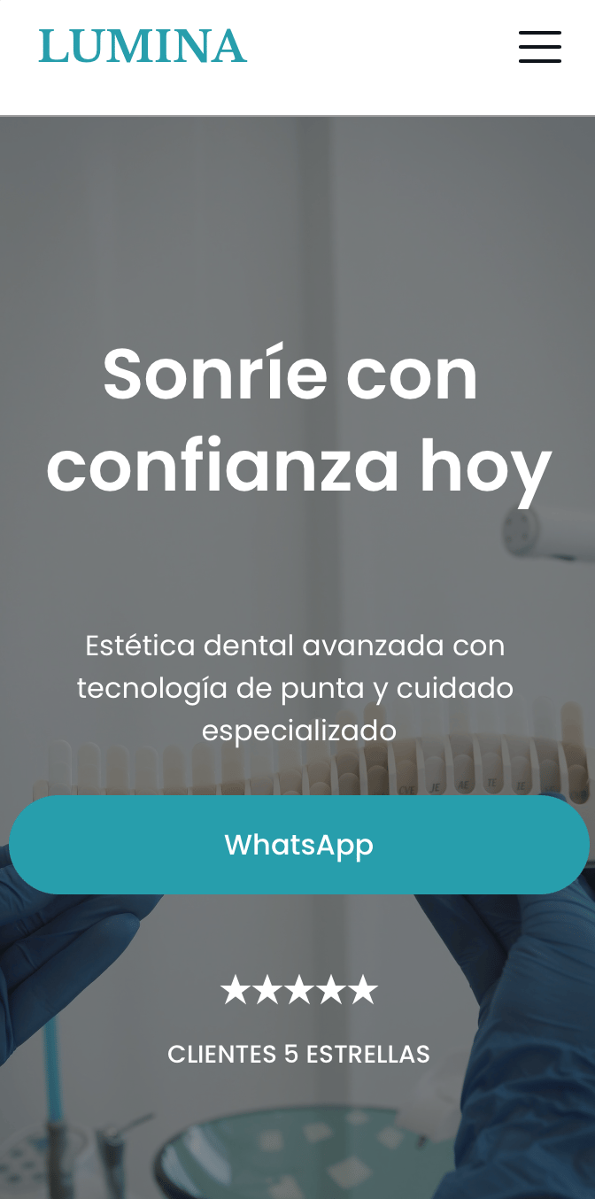 Página única (Single Page) optimizada para conversión rápida. Ideal para profesionales de la salud que buscan mostrar servicios específicos y recibir citas por WhatsApp de inmediato.